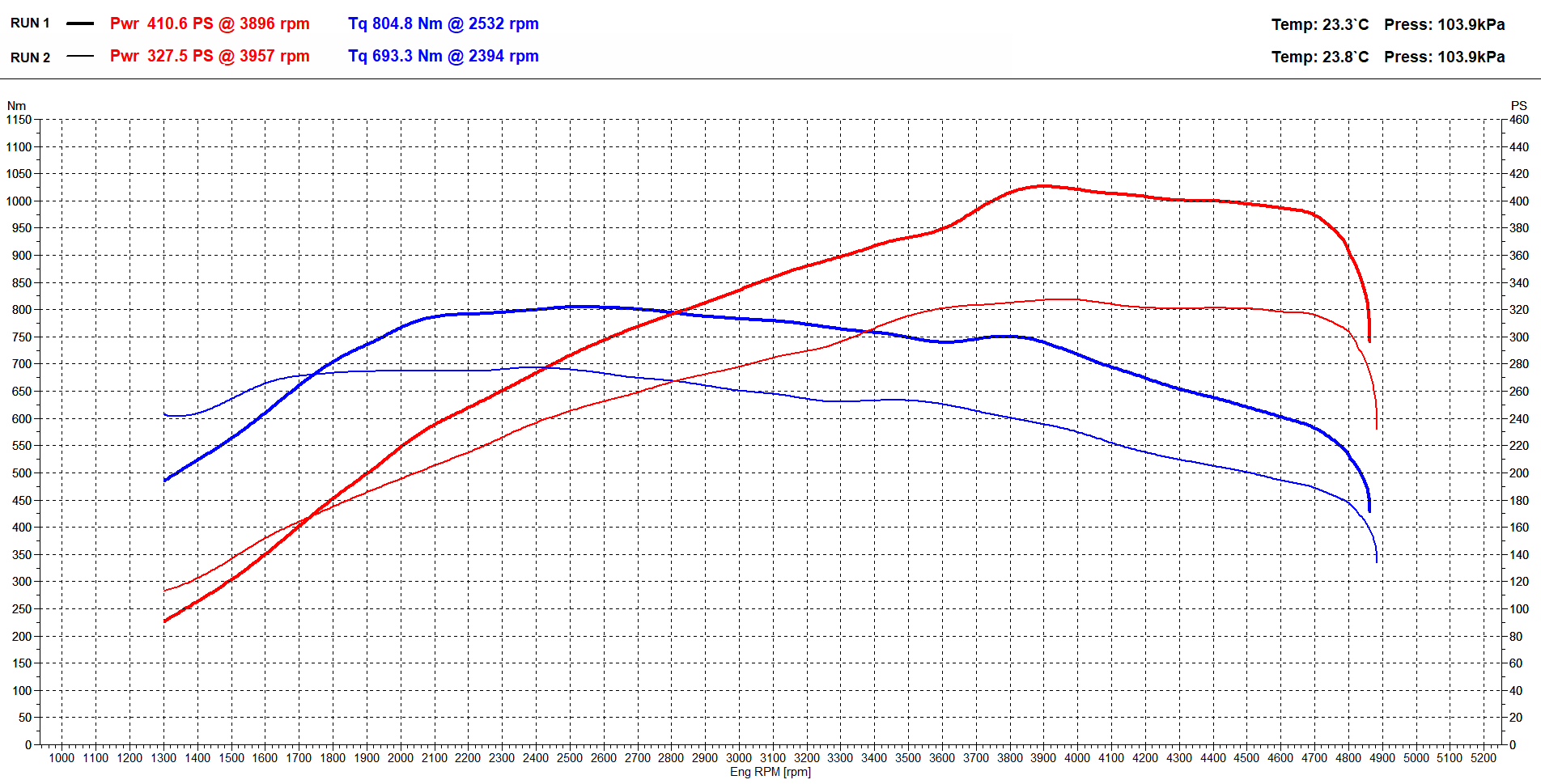 Tuned file: +83PS, +111Nm Requires TCU tune (otherwise torque will be 30-40Nm lower). See these projects. |