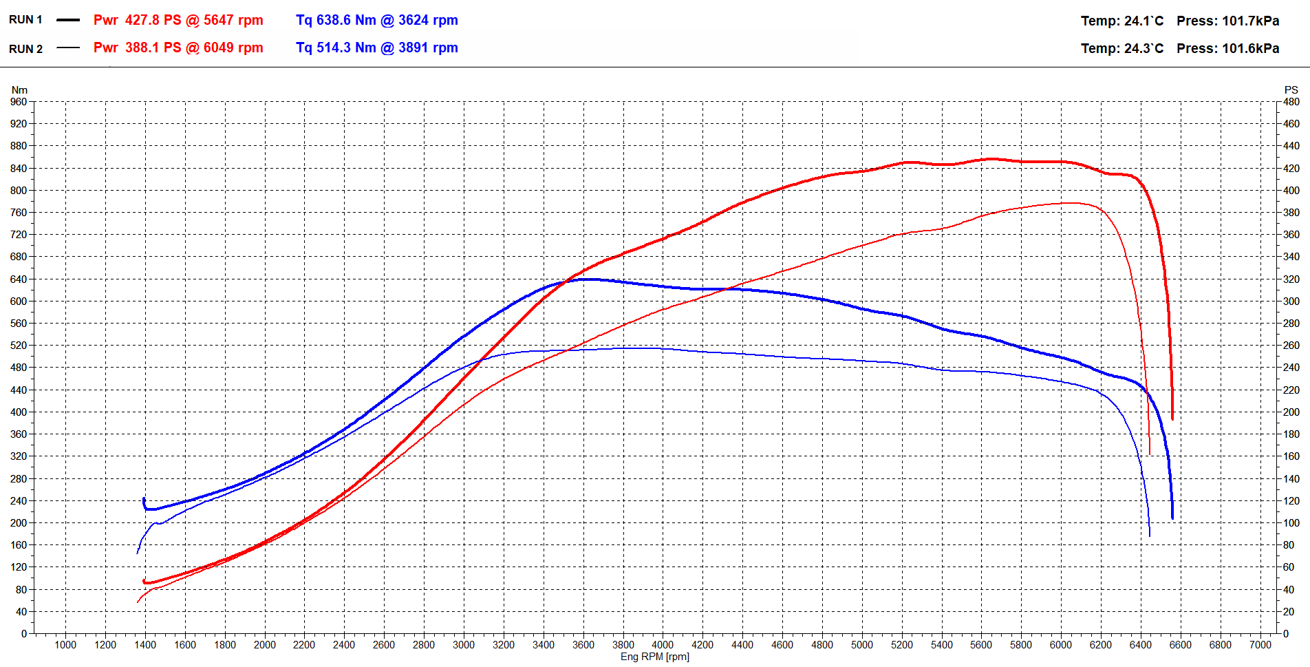 NB! Dyno graph is from 380 PS variant, but the end result is identical.